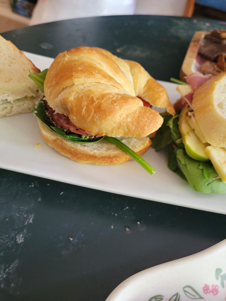 ok so this recipe is meant to be on regular bread but I was craving a crissont sandwich. It also is meant to be made with Prosciutto but since I had already made one, I chose a peppered salami instead and oh my goodness. I even added a pepper jelly on the bun, and that really kicked up the flavor.