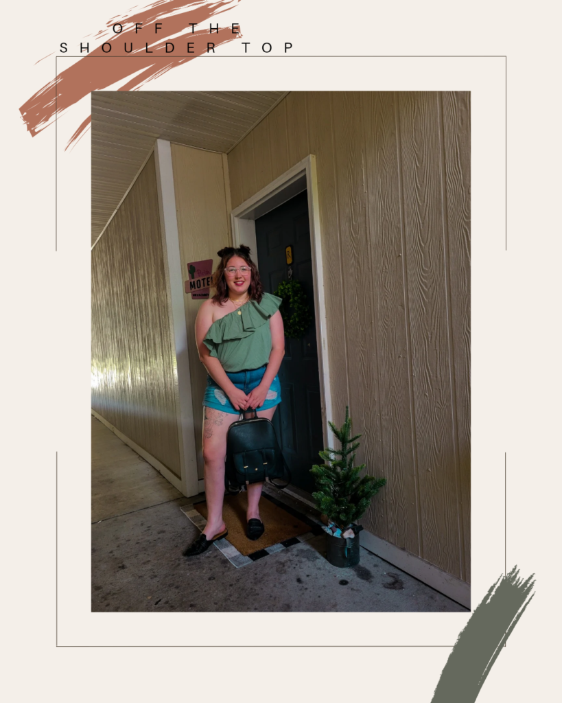 One shoulder top-How fun is an off the shoulder top?! While this one is an old target favorite, I liked a similar one from Amazon that that has a more relaxed hem at the bottom than cinched like min. It’s more of a cottony, waffle texture but still so cute with the ruffle detail. I would wear my normal size of xl.