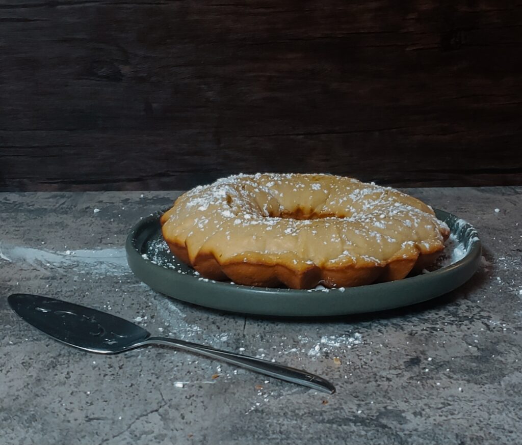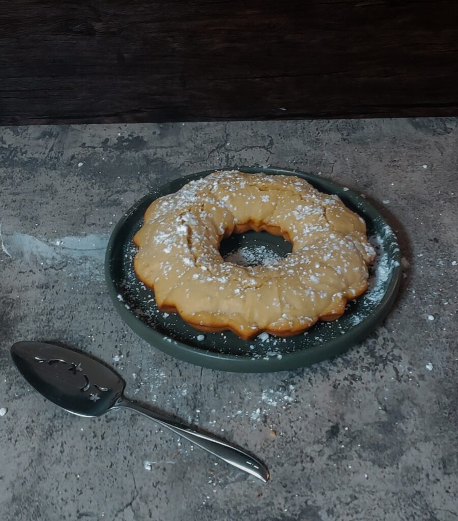 • Grease the ciambella mould and dust with flour, remove any excess flour. Add the batter to a 10″ cake mould and bake for 25-30 minutes until a toothpick inserted comes out clean.