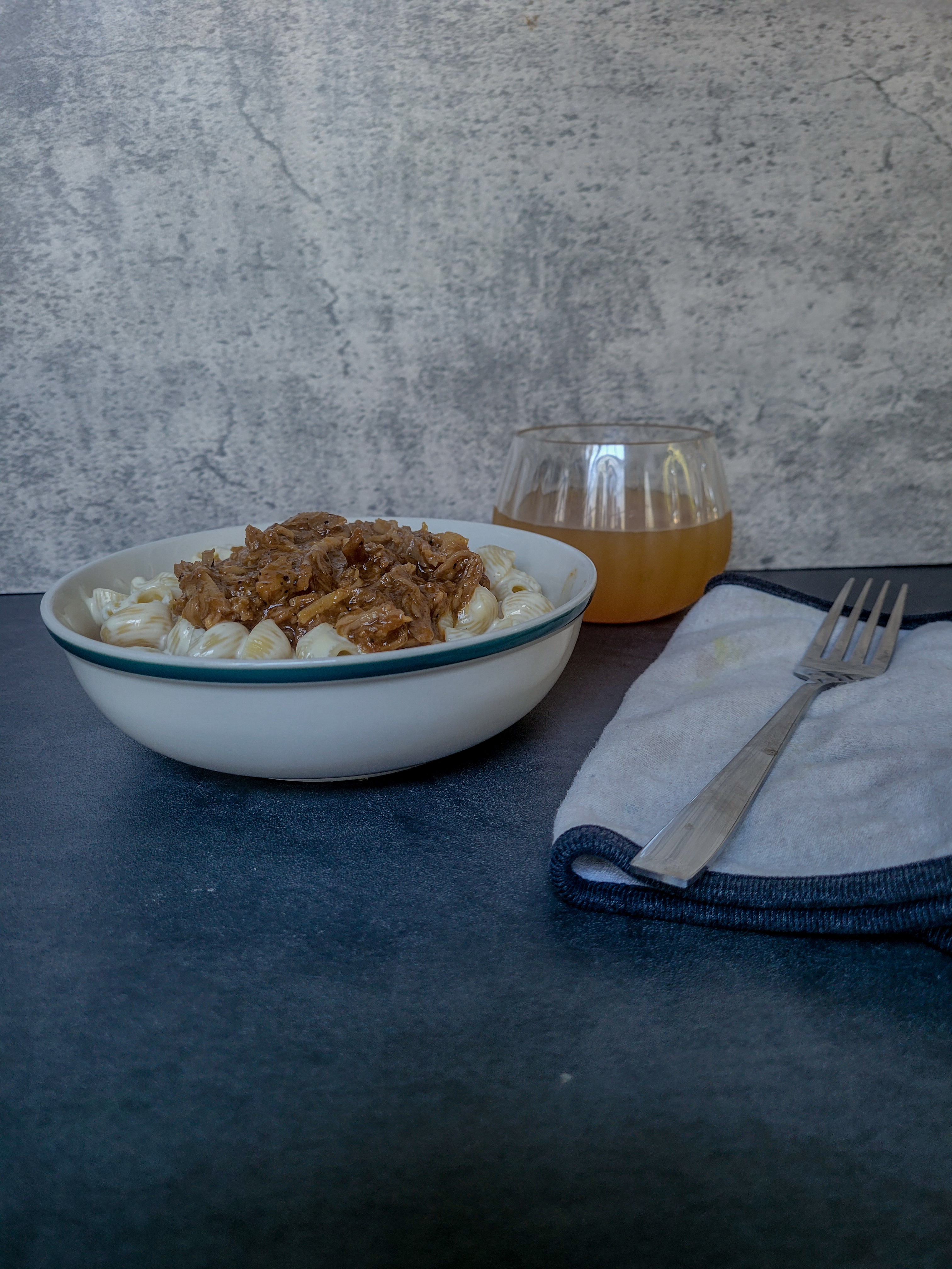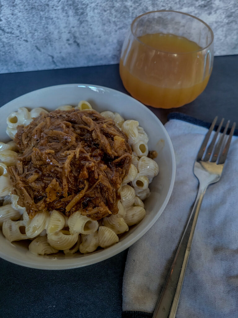Now you can top your macaroni with the pulled pork an enjoy, store anybleftover in an air tight glass container.