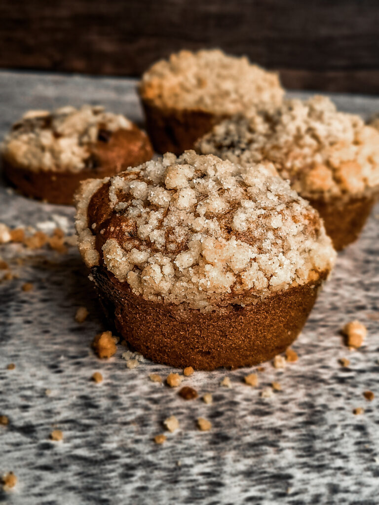 But I really like the struesal topping on these muffins with this maple glaze. It’s so good when warmed up and paired with your coffee or tea in the morning or in the evening.